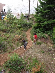 Then, we did some work laying wood chip as a path from the dock up to the cabins.